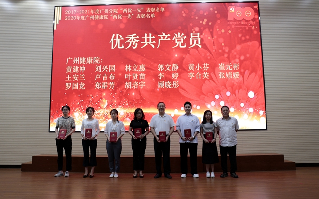 會上舉行了新黨員宣入黨誓儀式,全體參會黨員一起重溫誓詞;表彰了2017-2021年廣州分院“兩優(yōu)一先”和廣州健康院2020年度“兩優(yōu)一先”,受表彰個人代表和集體代表分別做了發(fā)言。