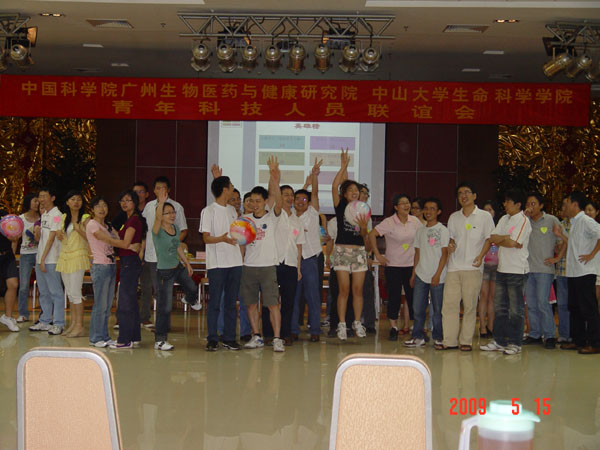 5月15日,我院與中山大學(xué)生命科學(xué)院的青年科技人員代表在番禺小瀛洲渡假村舉辦聯(lián)誼活動(dòng)。近100名青年科技人員參加了本次活動(dòng),他們當(dāng)中有不少人具有博士學(xué)歷或者高級(jí)職稱,其中不乏在學(xué)科領(lǐng)域和科技創(chuàng)新中頗有建樹的青年才俊以及在海外學(xué)成歸國的留學(xué)人員。我院黨委書記黃建沖、中大生科院黨委書記武少新、常務(wù)副院長鄭利民、副院長馮雙出席了活動(dòng)。雙方院領(lǐng)導(dǎo)在活動(dòng)開始前發(fā)表了講話,他們表示,希望通過聯(lián)誼活動(dòng),增進(jìn)雙方的感情,加強(qiáng)相互間的交流與合作。