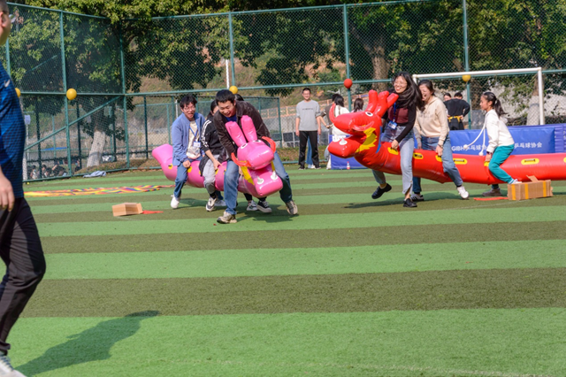 賽場上,參賽者就神龍吐珠、雙龍戲珠、青春風(fēng)火輪等12項(xiàng)比賽展開了激烈的角逐,爭相完成各項(xiàng)游戲任務(wù)。大家手腳并用,竭盡全力,場面歡樂而激動(dòng)人心。運(yùn)動(dòng)會(huì)為迎接龍年而設(shè)計(jì)的比賽“雙龍戲珠”吸引了眾多觀眾的目光。游戲設(shè)計(jì)新穎,隊(duì)員們緊握“龍身”,全力以赴地向目標(biāo)飛奔,充分展現(xiàn)團(tuán)結(jié)協(xié)作的力量。除競技項(xiàng)目外,活動(dòng)還設(shè)置了許多娛樂項(xiàng)目。投壺游戲、珠行萬里、合力建塔等讓大家盡情揮灑才藝和活力。