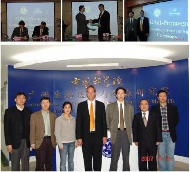 4月6日,中科院廣州醫(yī)藥院與普洛麥格公司(Promega Corporation)就新藥開發(fā)簽署合作協(xié)議。廣州醫(yī)藥院院長陳凌博士、普洛麥格公司技術(shù)總監(jiān)John Waston博士等參加了在廣州醫(yī)藥院舉行的簽字儀式。