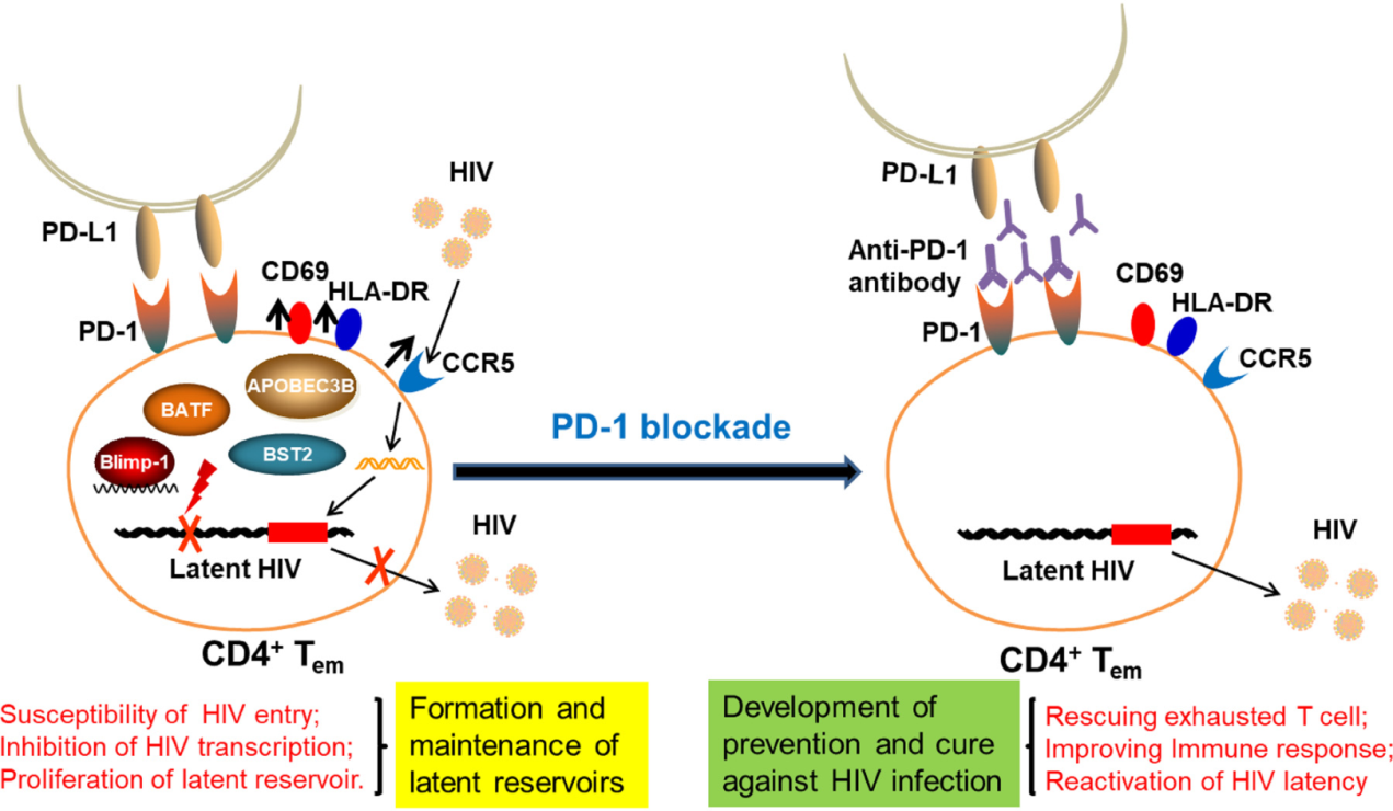 該研究初步探索了PD-1信號(hào)通路對(duì)艾滋病治療的影響,揭示了PD-1表達(dá)與HIV潛伏儲(chǔ)存庫之間的相關(guān)性,同時(shí)對(duì)相關(guān)的機(jī)制進(jìn)行了探索。為合理設(shè)計(jì)清除HIV儲(chǔ)存庫的治療策略提供了新的信息和見解。 另外,PD-1抗體廣泛用于多種腫瘤的治療,在HIV感染的腫瘤患者中,提示使用PD-1抗體治療的同時(shí)請(qǐng)勿停用ART的必要性。