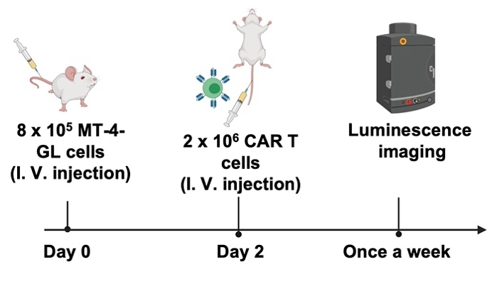 靶向CCR8 CAR T細胞治療MT-4小鼠模型的流程圖