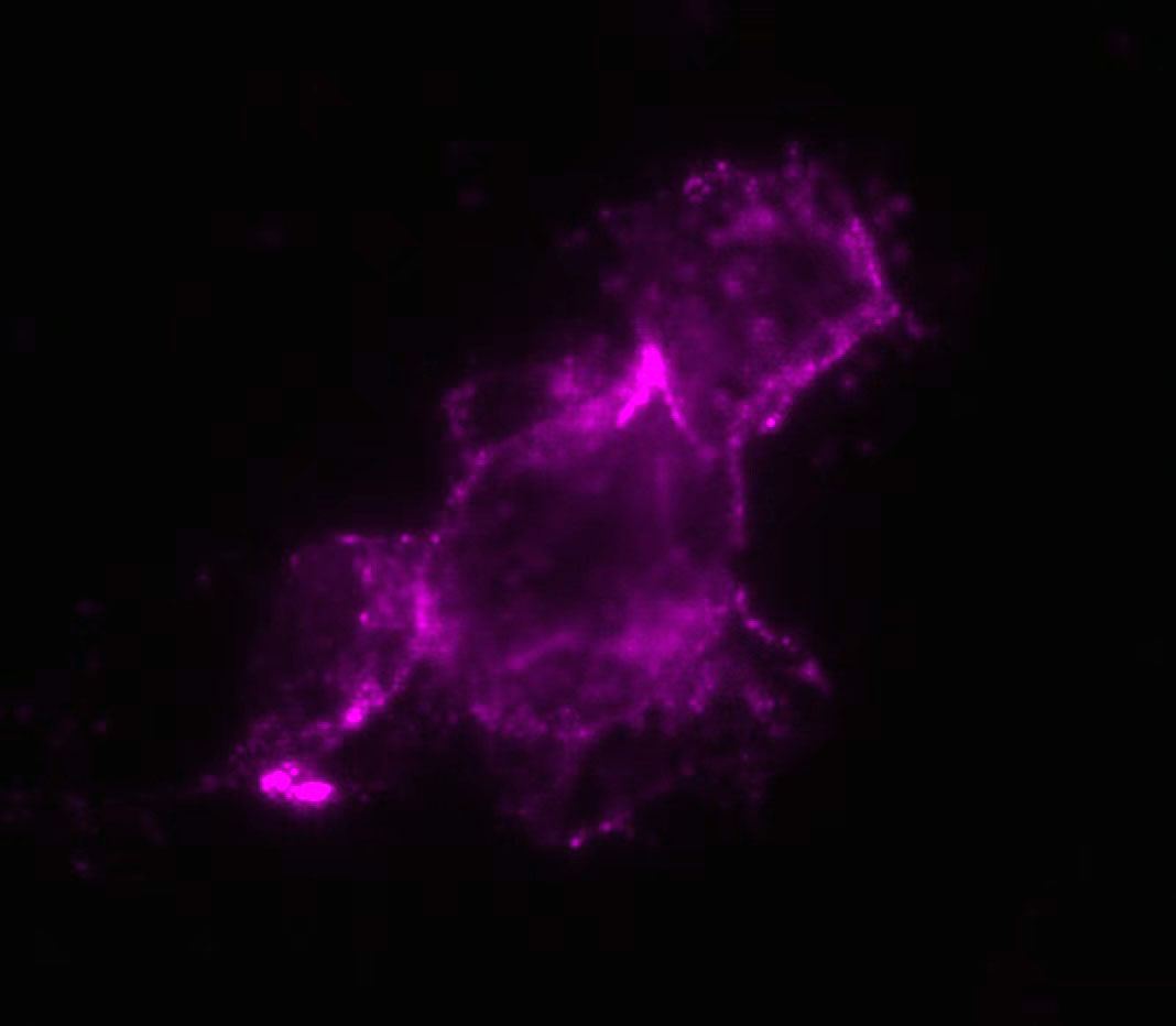 本照片是做免疫熒光實驗時所拍攝,圖中若干細(xì)胞構(gòu)成的圖像恰似一匹迎風(fēng)奔跑的小馬。(谷佳明攝)