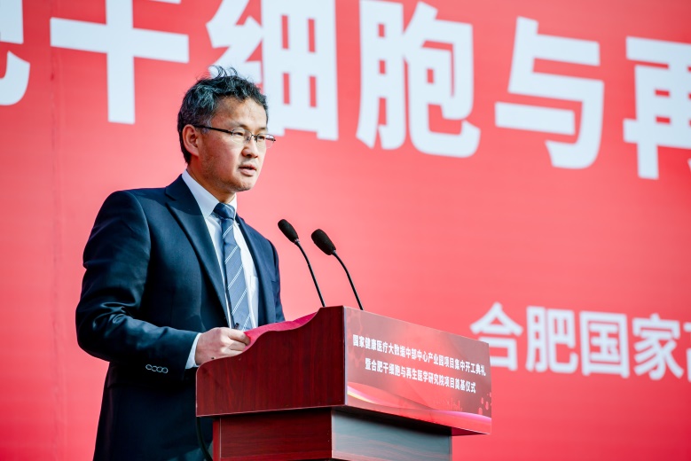 10月23日上午,國家健康醫(yī)療大數(shù)據(jù)中部中心產(chǎn)業(yè)園項目集中開工典禮暨合肥干細(xì)胞與再生醫(yī)學(xué)研究院項目奠基儀式在合肥高新區(qū)舉辦。中科院廣州健康院院長陳新文,中科院廣州健康院學(xué)術(shù)院長裴端卿,合肥市副市長王文松,合肥高新區(qū)工委書記、管委會主任宋道軍出席儀式并講話,安徽省經(jīng)信廳黨組成員、副廳長王燈明出席儀式并宣布項目開工。合肥高新區(qū)工委委員、管委會副主任劉登銀主持儀式。省、市相關(guān)部門負(fù)責(zé)人出席儀式。