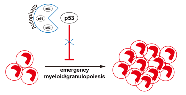 自噬調(diào)控人粒系祖細(xì)胞中p53降解的示意圖