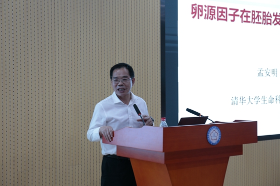 清華大學(xué)生命科學(xué)院孟安明院士做了題為“卵源因子在胚胎發(fā)育中的作用”的學(xué)術(shù)報(bào)告。孟安明院士深入淺出地講述了胚胎發(fā)育過程,圍繞其團(tuán)隊(duì)研究的huluwa等相關(guān)卵源因子在胚胎發(fā)育中的重要作用展開介紹,分享了團(tuán)隊(duì)的最新研究結(jié)果。此外,還與現(xiàn)場(chǎng)師生做了親切交流,討論了“人造胚胎”等領(lǐng)域內(nèi)熱點(diǎn)和難點(diǎn)問題,極大地啟發(fā)了與會(huì)者的科研靈感。報(bào)告內(nèi)容豐富詳盡,與會(huì)師生受益良多,反響熱烈。