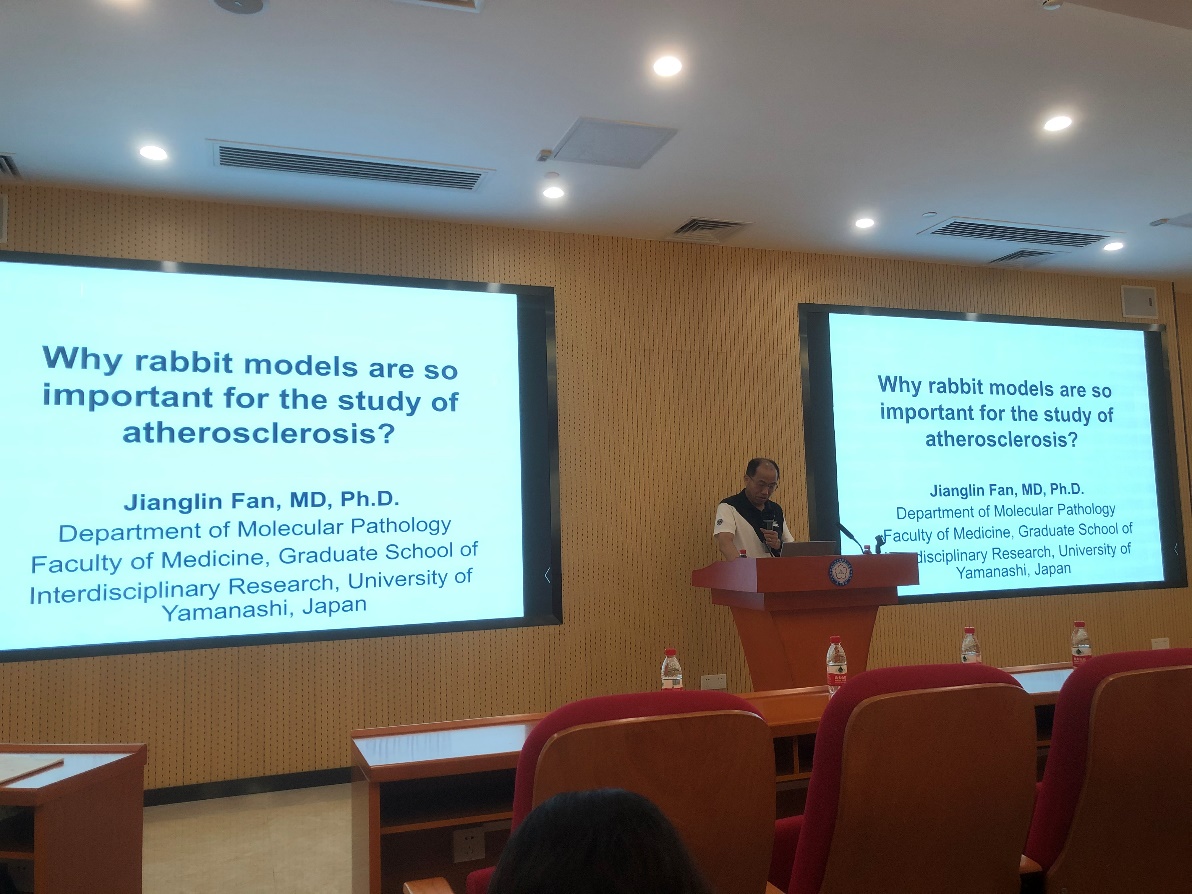 6月18日,日本山梨大學(xué)醫(yī)學(xué)部分子病理學(xué)教研室范江霖教授應(yīng)邀到中國科學(xué)院廣州生物醫(yī)藥與健康研究院進(jìn)行學(xué)術(shù)交流,并作了題為 “Why rabbit models are so important for the study of atherosclerosis?” 的學(xué)術(shù)報告。報告由廣州健康院賴良學(xué)研究員主持。