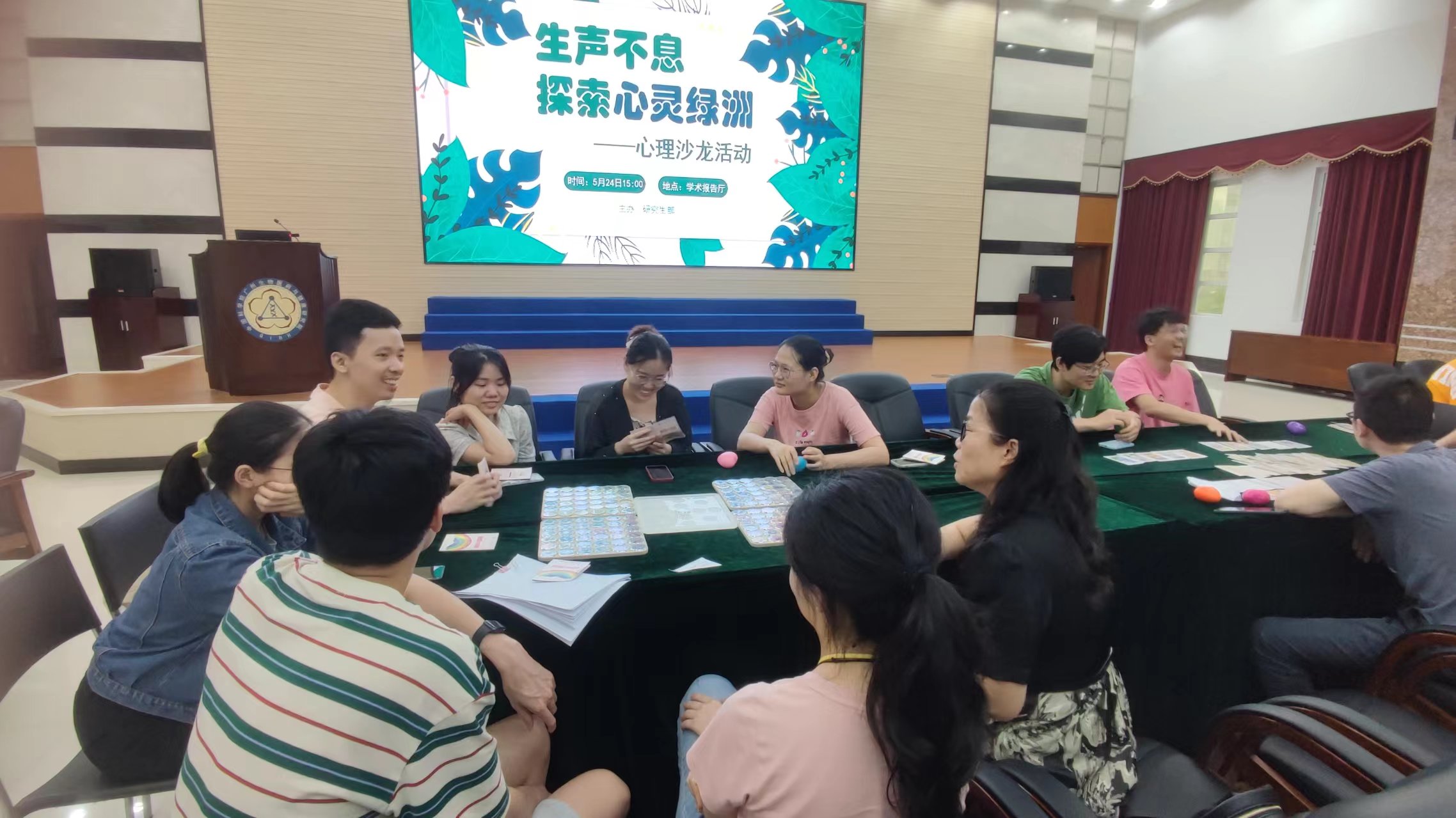 5月24日,在“學(xué)生心理健康日”來(lái)臨之際,廣州健康院研究生部邀請(qǐng)廣州市心理咨詢師協(xié)會(huì)來(lái)院開(kāi)展了以“生聲不息,探索心靈綠洲”為主題的心理沙龍活動(dòng),在院學(xué)生、博士后和職工參加活動(dòng)。