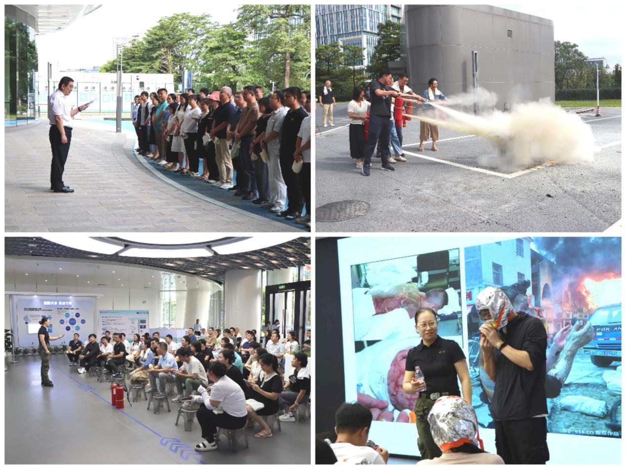 演練涵蓋應急疏散、滅火器實操、安全知識培訓三大核心環(huán)節(jié),全程高效有序,達到預期效果。在應急疏散演練環(huán)節(jié),研發(fā)樓全體人員在5分鐘內(nèi)全部疏散至研發(fā)樓南面廣場。整個疏散過程緊張有序,充分檢驗了園區(qū)應急疏散路線的合理性與人員的快速響應能力。在滅火器實操演練環(huán)節(jié),培訓老師講解滅火器的使用步驟及注意事項,參與人員逐一上手,實操滅火,切實掌握初起火災撲救技能。培訓環(huán)節(jié)則聚焦于火災逃生禁忌、人體燒傷正確急救方法和防暴力襲擊等核心要點。防煙面罩佩戴實操環(huán)節(jié)更是讓大家親手掌握濃煙環(huán)境下的防護技能,有效填補了安全知識盲區(qū)。