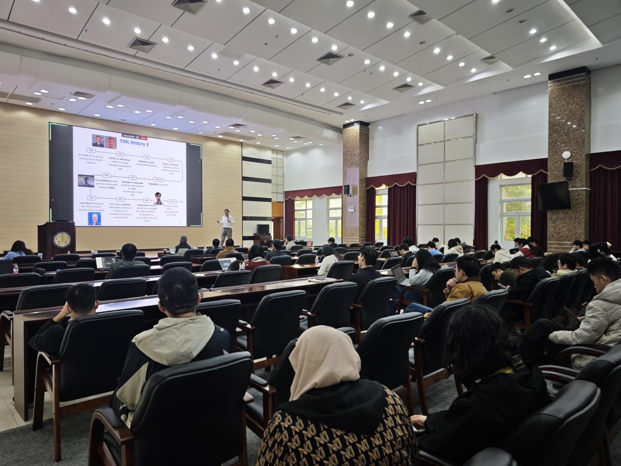 張?jiān)菏恳浴?/span>Evolutionary Machine Learning: 70 Years of Progress》為題做報(bào)告,他以時(shí)間為主線,系統(tǒng)梳理了進(jìn)化機(jī)器學(xué)習(xí)從1950年代圖靈提出模式識(shí)別理念至今70年的發(fā)展脈絡(luò),清晰呈現(xiàn)了從規(guī)則邏輯、樹基模型到神經(jīng)網(wǎng)絡(luò)融合的三大關(guān)鍵階段,詳解了GP(基因編程)系列模型迭代及進(jìn)化計(jì)算與深度學(xué)習(xí)的融合突破。張?jiān)菏拷Y(jié)合團(tuán)隊(duì)研究成果,重點(diǎn)介紹了人工智能技術(shù)在計(jì)算機(jī)視覺、醫(yī)療微小病灶檢測(cè)、新冠醫(yī)療資源調(diào)度、華為供應(yīng)鏈優(yōu)化等領(lǐng)域的跨界應(yīng)用,同時(shí)客觀分析了當(dāng)前理論深度不足、計(jì)算量較大、泛化能力待提升等挑戰(zhàn)。他強(qiáng)調(diào),未來技術(shù)發(fā)展應(yīng)聚焦“真實(shí)世界影響”,以解決實(shí)際問題為導(dǎo)向,在經(jīng)濟(jì)效益、環(huán)境效益與人類健康領(lǐng)域?qū)崿F(xiàn)更大貢獻(xiàn)。