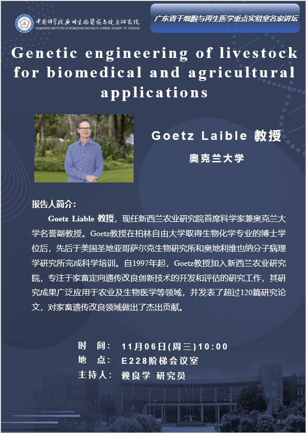 2024年11月6日廣東省干細(xì)胞與再生醫(yī)學(xué)重點(diǎn)實(shí)驗(yàn)室名家講壇:Genetic engineering of livestock for biomedical and agricultural applications