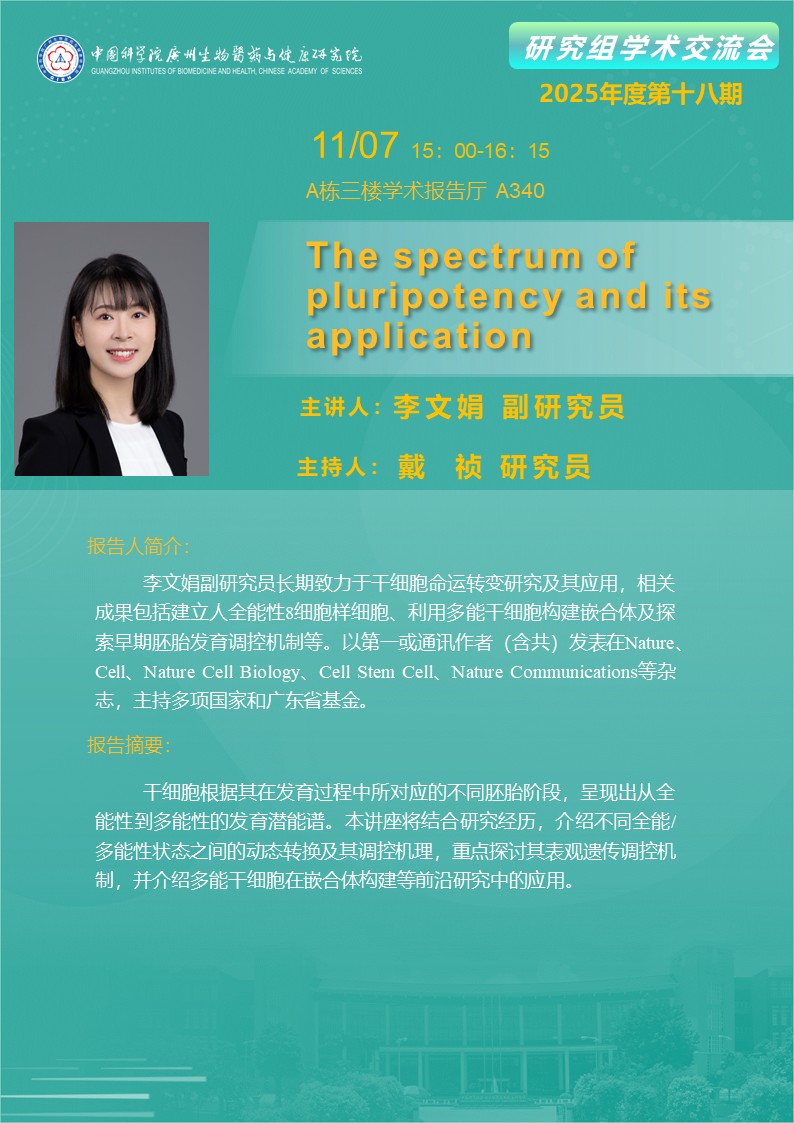 2025年11月7日研究組學術交流會(2025年度第十八期):The spectrum of pluripotency and its application
