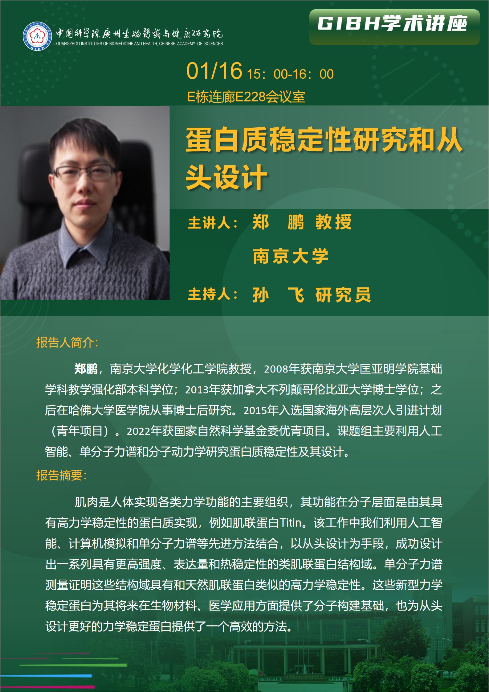 2026年1月16日學(xué)術(shù)講座:蛋白質(zhì)穩(wěn)定性研究和從頭設(shè)計(jì)