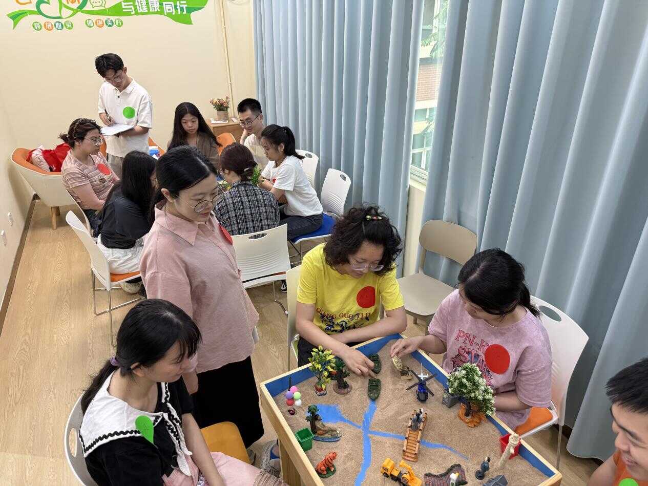 5月21日,正值小滿時(shí)節(jié),廣州健康院教育處精心策劃的“生生不息·心心向榮”心理健康拓展活動(dòng)在研究院學(xué)生成長輔導(dǎo)室及綜合體育館舉行,活動(dòng)通過“團(tuán)體沙盤游戲”與“正念減壓訓(xùn)練”兩大特色模塊,為在院研究生提供了沉浸式心理調(diào)適體驗(yàn)。